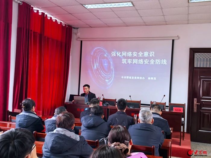 郓城县网信服务中心网络安全室副主任杨尊茂结合网络安全的背景及意义、计算机病毒等常见的网络安全问题,通过理论结合真实案例的方式,直观地展现了网络安全漏洞可能引发的严重后果,以及在日常工作中如何防范网络安全、规避网络诈骗进行了讲解,极大地提高了参训人员的网络安全意识和防护水平。